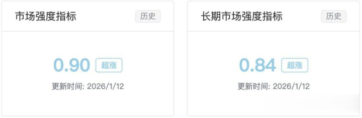 市场强度指标在经过周一的上涨之后,已经进入到极度超涨区间,近一年的行情中都极少触及到这个状态。