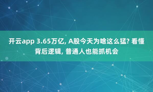 开云app 3.65万亿, A股今天为啥这么猛? 看懂背后逻辑, 普通人也能抓机会