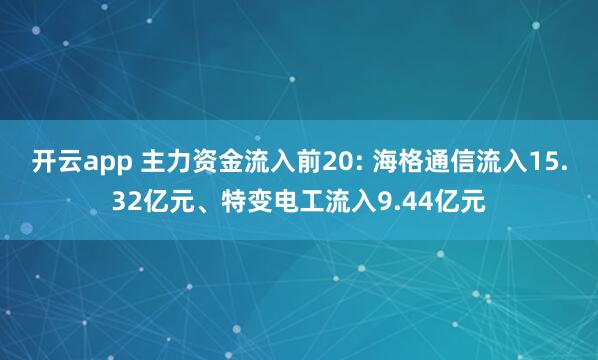开云app 主力资金流入前20: 海格通信流入15.32亿元、特变电工流入9.44亿元