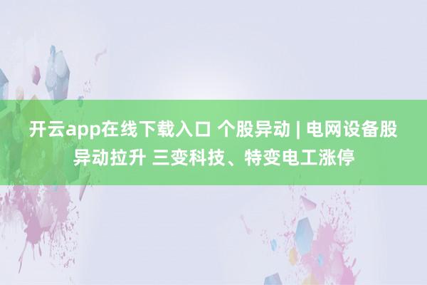 开云app在线下载入口 个股异动 | 电网设备股异动拉升 三变科技、特变电工涨停
