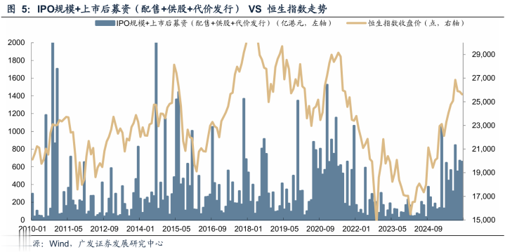 一级市场抽水通常对港股走势没有绝对性影响。25年IPO两次高峰5月、9月恒指、恒科均取得正收益,并且9月行情甚至出现放量上涨。