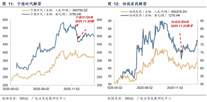 真正风险点在于解禁潮而非IPO本身。港股主板上市后6个月的基石投资者解禁,开云app往往对市场形成压力。历史数据显示,2011年中、2015年下半年、2019年3月、2021年二季度、2022年年中等解禁高峰期,与港股调整时段高度重合。个股层面,如2025年11月宁德时代和恒瑞医药在解禁前一周均出现明显回调,解禁完成后才逐步企稳回升。
