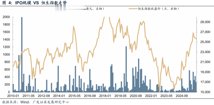 2024年10月18日,香港证监会与香港联交所作出联合声明,宣布将优化新上市申请审批流程时间表,进一步提升香港作为区内领先的国际新股集资市场的吸引力。港股在2025年以来迎来新一轮上市潮,2025年港交所以117家IPO,2859亿港元的IPO总募集资金,时隔4年重回全球榜首。市场预期2026年港股IPO募资规模有望延续强势,并突破3000亿港元。