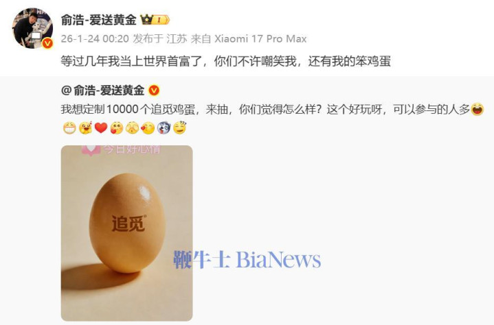 开云 追觅俞浩: 等过几年我当上世界首富了, 不许嘲笑我