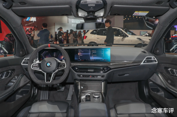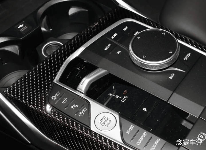 内饰部分,330Li高配车型给了碳纤维饰条和水晶组件。好看吗?好看。