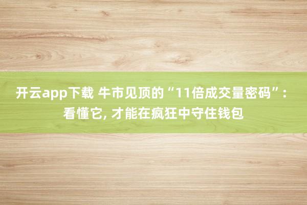 开云app下载 牛市见顶的“11倍成交量密码”: 看懂它, 才能在疯狂中守住钱包