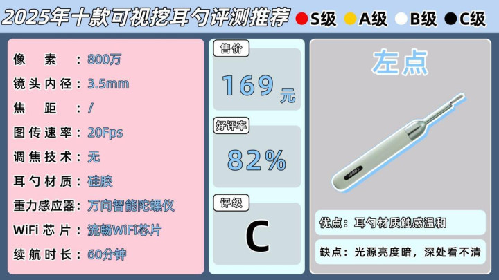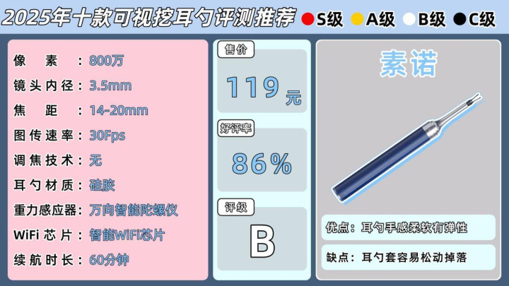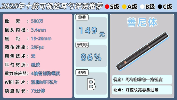 ②优先考虑有研发实力和口碑的专业品牌,成像清晰、信号稳定,耳勺材质安全可靠;