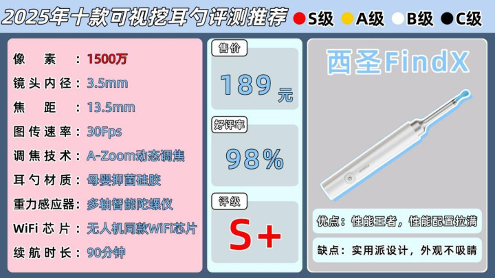 在可视挖耳勺领域,西圣FindX无疑是一位深谙核心技术的实力派选手!西圣团队早期便专注于图像模组与光学方案的研发,曾为多个国内外知名品牌提供摄像头技术支持,积累了大量底层视觉经验。正是基于这样的技术沉淀,他们进军可视挖耳勺市场后迅速脱颖而出,站稳行业一席之地。其产品已通过多项欧美权威认证,品质扎实可靠!Find系列定位旗舰级别,在画质清晰度、操作手感与使用可靠性之间取得了出色平衡,不仅获得专业医师的推荐,也受到众多数码爱好者的青睐,长期稳居行业口碑与性能的前列!