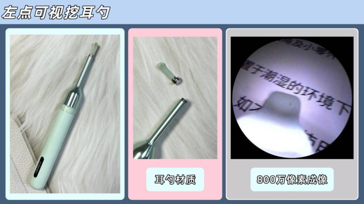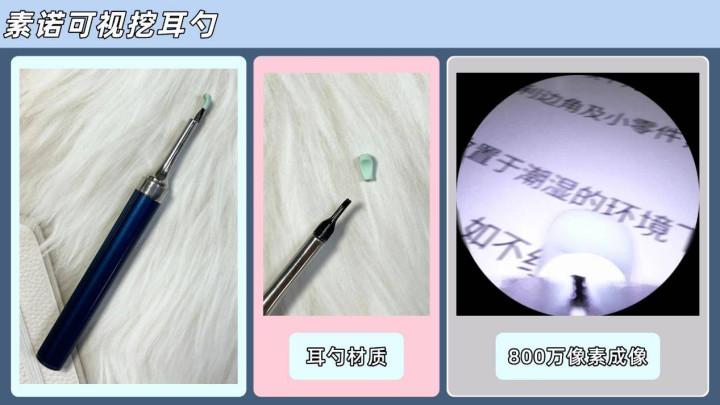 ③镜头像素要高且真实可用,高像素能看清耳垢和耳道细节,同时注意防止商家虚标;