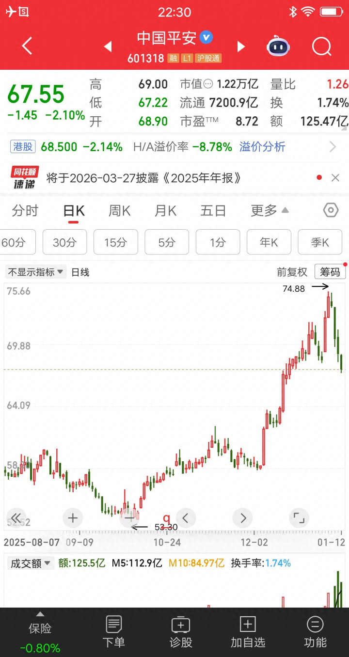 目前还无法确定,中国平安走下跌趋势。但是要提醒大家,一定要管理好仓位,如果真的走主跌浪,喜欢抄底和补仓的散户,会被套的。