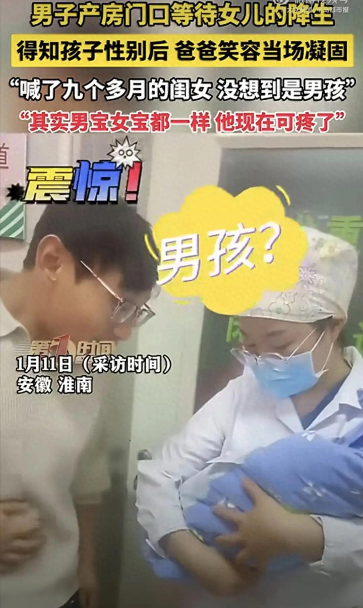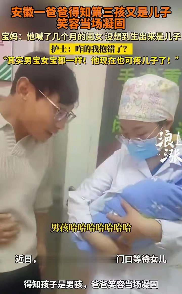 产房外爸爸笑容凝固的瞬间,戳中千万网友泪点与笑点。攥着粉色婴儿服盼小棉袄的他,听完“又是儿子”直接愣神,眉眼间的欢喜瞬间清零,这一幕刷屏全网,单日播放破5亿,没人指责重男轻女,全是共情的叹息。