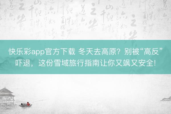 快乐彩app官方下载 冬天去高原?别被“高反”吓退,这份雪域