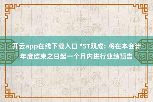 开云app在线下载入口 *ST双成: 将在本会计年度结束之日起一个月内进行业绩预告