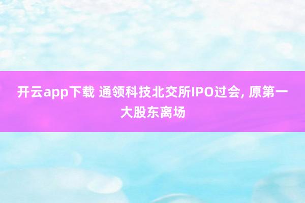 开云app下载 通领科技北交所IPO过会, 原第一大股东离场