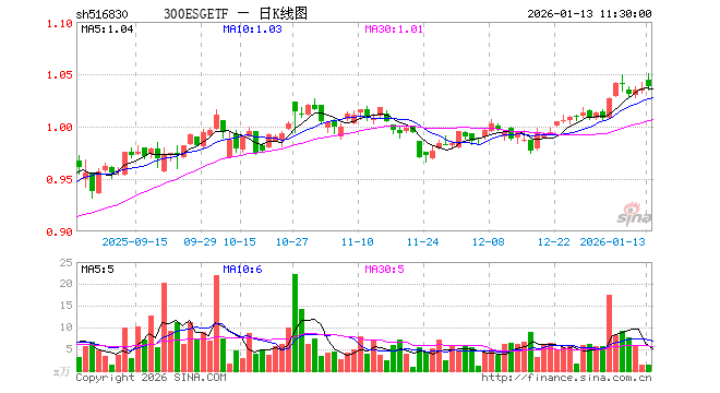 开云 300ESGETF(516830)涨0.19%, 半日成交额157.90万元