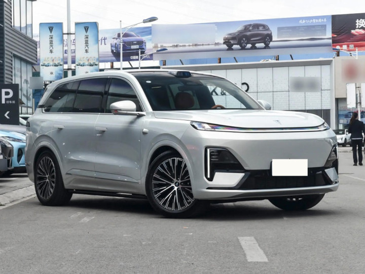 深蓝S09的销量就不说了,懂得都懂。颜色这块,它也没有提供白颜色车漆可选,所以我们聊设计就选的是它这个银色。单从外观造型上来看,深蓝S09其实挺像理想L9,这种视觉感受源于它的贯穿式LED灯、侧面的车身比例以及整个的车体造型轮廓。当然,前脸下方的左右两侧灯组绝对是纯原创,这也是它有别于理想L9的最大不同。整体来说,如果不是因为先有理想L9,那深蓝S09的造型设计绝对是惊艳的,但是吧,谁叫人理想L9珠玉在前呢?所以这设计自然也就一言难尽了。