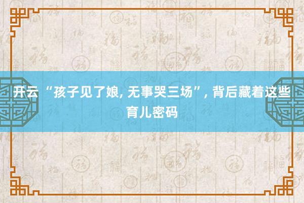 开云 “孩子见了娘, 无事哭三场”, 背后藏着这些育儿密码