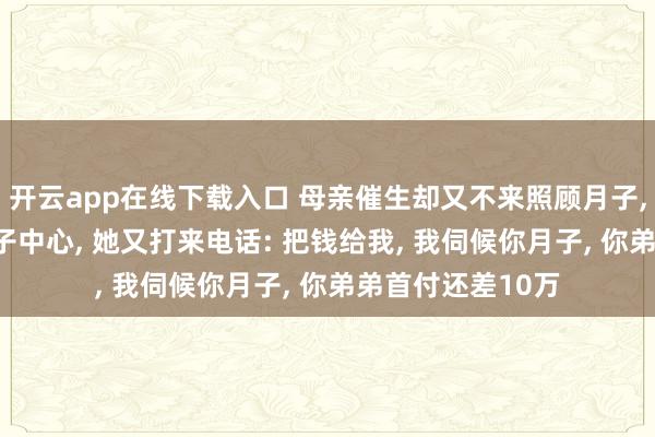 开云app在线下载入口 母亲催生却又不来照顾月子, 我花3万住进月子中心, 她又打来电话: 把钱给我, 我伺候你月子, 你弟弟首付还差10万